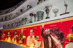februarie 7, 2016 – 4:53 pmUna dintre pasiunile pe care le am este cea cu masini, iar daca tot am ajuns in Italia, am mers sa vizitez Muzeul Ferrari din Maranello. Biletul de acces in muzeu costa 15 euro. Este cel mai cunoscut muzeu din lume dedicat iubitorilor de Formula 1. Acesta gazduieste toate modelele care au participat la concursuri de Formula 1. Cel mai impresionant loc este sala unde sunt expuse cupele castigate de-a lungul timpului alaturi de masinile de Formula 1. Pe perete sunt proiectate filme cu secventele vitoriei, iar pe fundal este o muzica de ambient pentru a creea o atmosfera placuta!